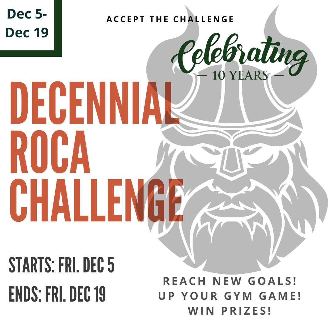 Join the Roca Community for the Decennial ROCA Challenge this December! This exciting challenge is open to everyone—Roca members and non-members of all ages and abilities.